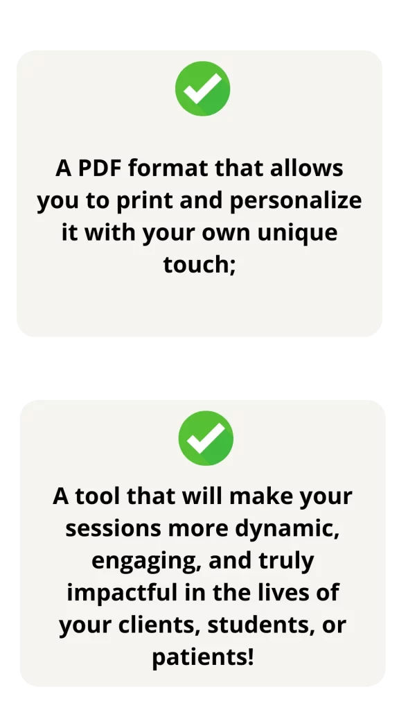 ✔ Suggestions for how to use the cards, whether in therapy or one-on-one/group sessions;